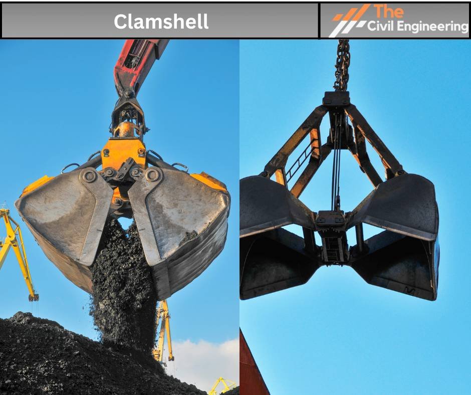 ✔ The type of excavators that have both the properties of cranes and a dragline are called clamshell excavators.
